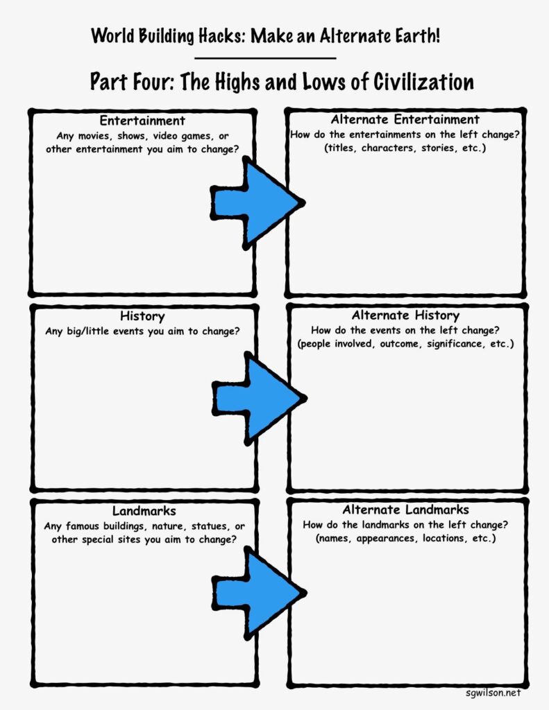 Download these worksheets for world building, story ideas, and general fun!